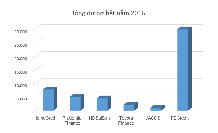 Kết thúc 06 tháng đầu năm 2017, tổng dư nợ tín dụng của Việt Nam đạt được 6.001.383 tỷ đồng, tăng 9,1% so với cuối năm trước. Trong đó thị phần cho vay tiêu dùng chiếm một tỷ lệ rất nhỏ chỉ khoảng từ 5% so với con số trên, ước tính khoảng hơn 300.000 tỷ đồng